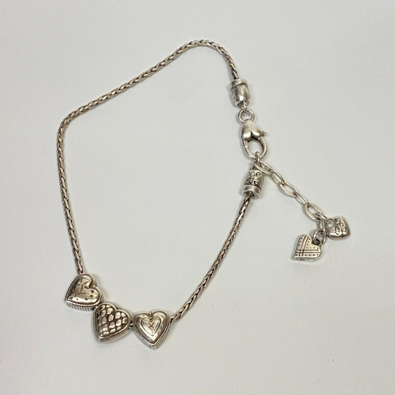 This beautiful bracelet from Brighton is a must-have for any fashionista. The silver-tone heart-shaped beads are strung together to create a charming and timeless piece. The bracelet is signed by the designer and features a lobster clasp for a secure fit.