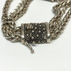 Crafted with the utmost precision, the Michael Dawkins Sterling Silver Starry Night Three Row Bracelet exudes elegance and sophistication. This bracelet, measuring 7.25 inches, features a series of intricately designed chains that offer a subtle shimmering effect, reminiscent of a starry night sky. With a 925 metal purity, the silver used in its construction is of the highest quality, ensuring both durability and a lustrous finish.